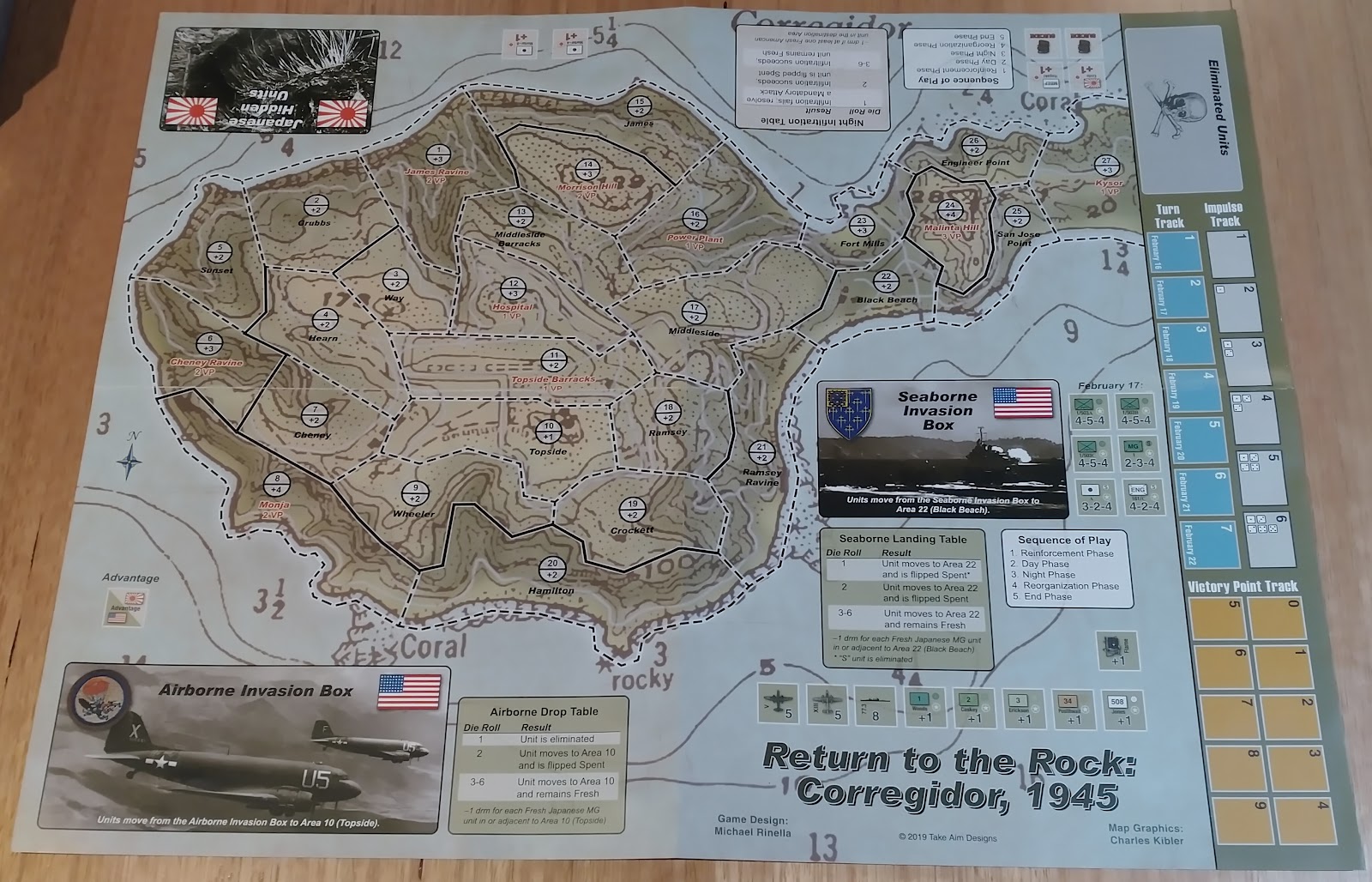 Return to the Rock is a two-player game covering the Battle for the Recapture of Corregidor, the largest of several islands in the mouth of Manilla Bay that were fortified by the US military after the Philippines became a possession of the United States in the aftermath of the Spanish American War.